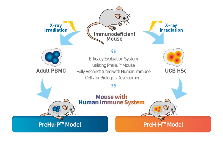 PreHu™-H 마우스는 제대혈 유래 CD34+ 조혈줄기세포 주입을 통해